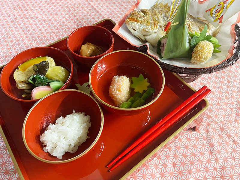 一生食べることに困らないようにとの願いをこめて、赤ちゃんに食べ真似をさせる儀式です。