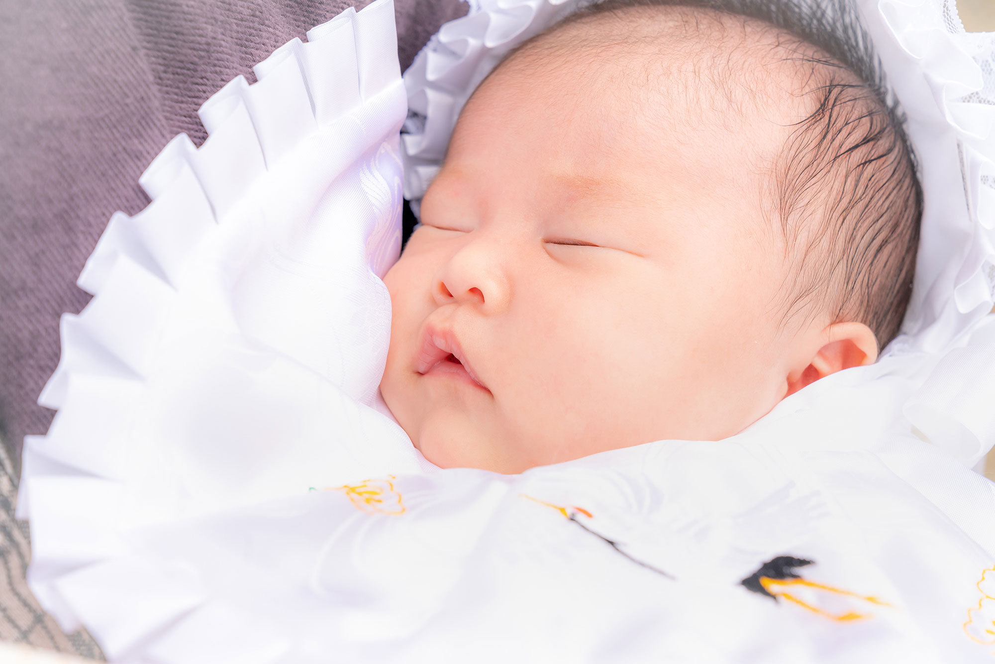 赤ちゃんの誕生を祝う、生まれてはじめての大きな行事で、赤ちゃんが無事生まれたご報告と、今後の健やかな成長とご加護をその土地の氏神様にお祈りする行事です。